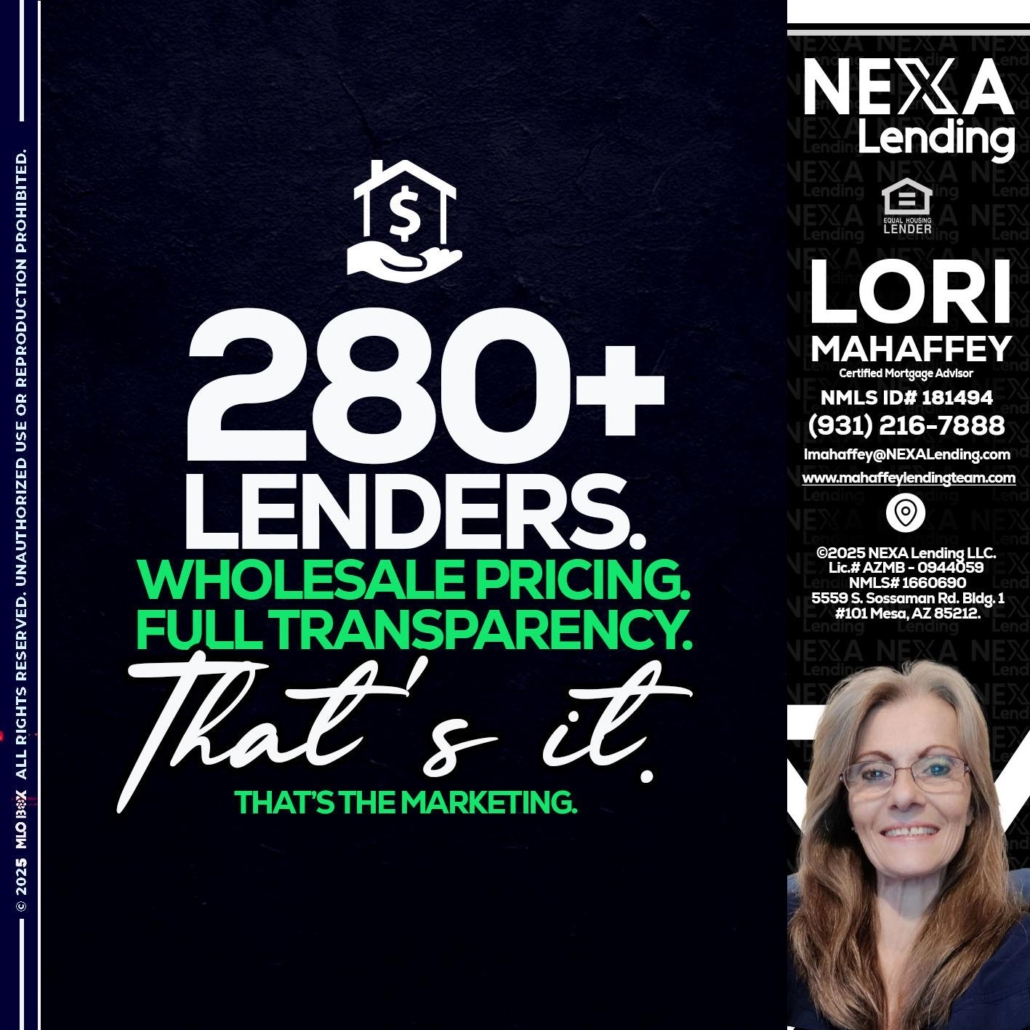 Hi, my name is Lori Mahaffey. I’m a Loan Officer with NEXA Mortgage LLC., offering personalized mortgage solutions, fast customized quotes, great rates and service with integrity.