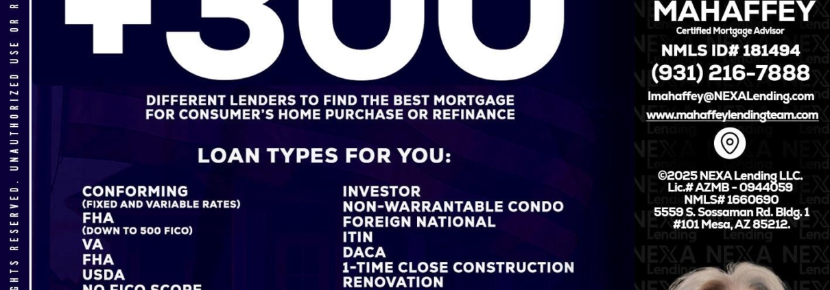 Hi, my name is Lori Mahaffey. I’m a Loan Officer with Lori Mahaffey LLC, offering personalized mortgage solutions, fast customized quotes, great rates and service with integrity.