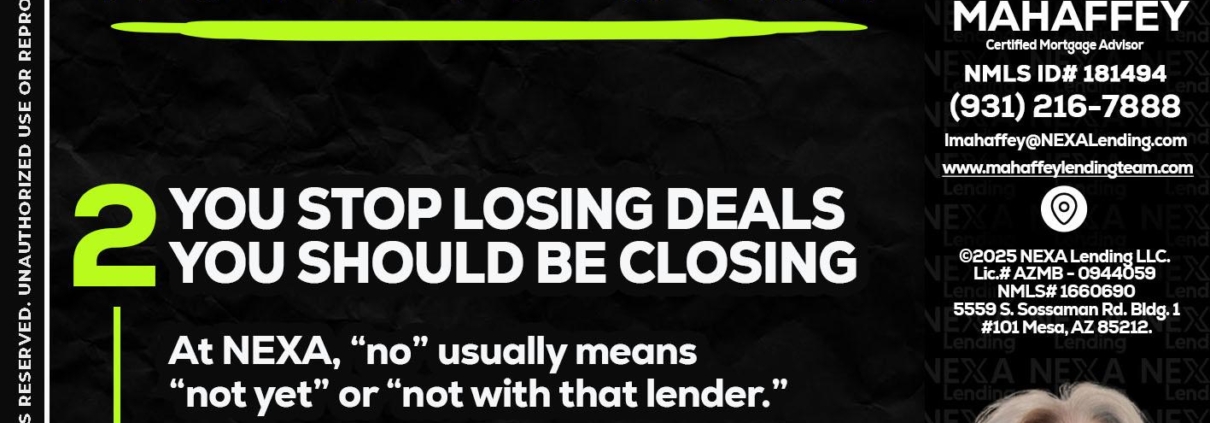 Hi, my name is Lori Mahaffey. I’m a Loan Officer with NEXA Lending LLC., offering personalized mortgage solutions, fast customized quotes, great rates and service with integrity.