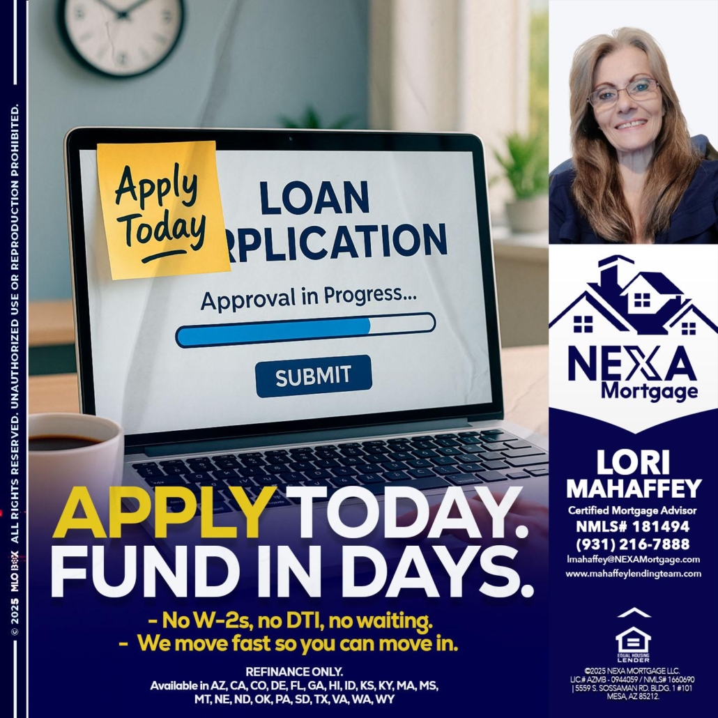 Hi, my name is Lori Mahaffey. I’m a Loan Officer with NEXA Mortgage LLC., offering personalized mortgage solutions, fast customized quotes, great rates and service with integrity.
