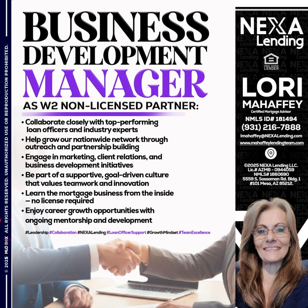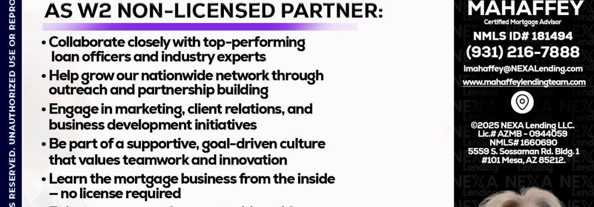 Hi, my name is Lori Mahaffey. I’m a Loan Officer with NEXA Mortgage LLC., offering personalized mortgage solutions, fast customized quotes, great rates and service with integrity.