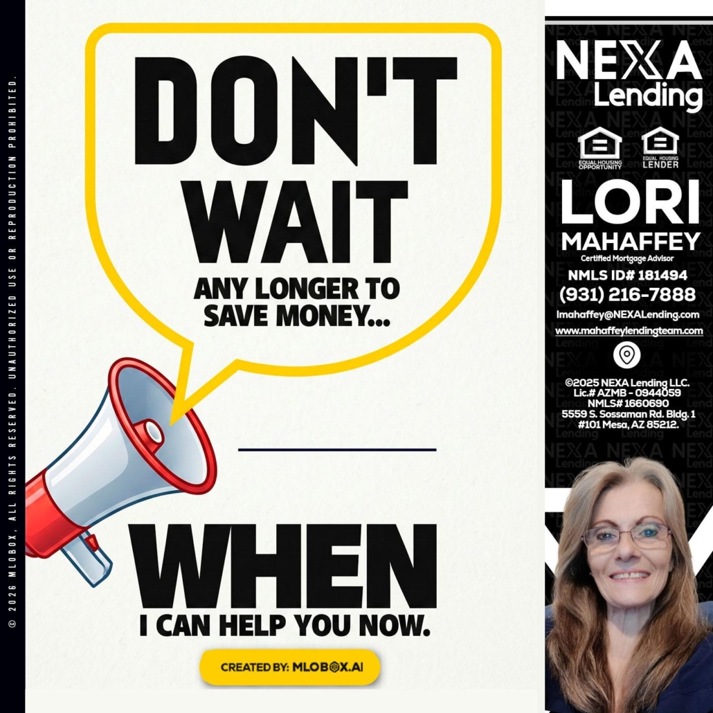 Hi, my name is Lori Mahaffey. I’m a Loan Officer with Lori Mahaffey LLC, offering personalized mortgage solutions, fast customized quotes, great rates and service with integrity.