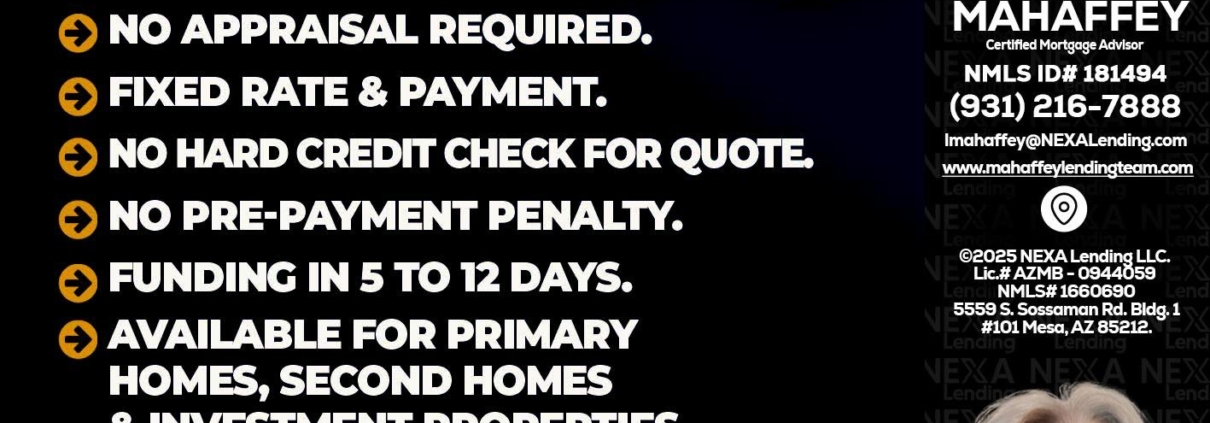 Hi, my name is Lori Mahaffey. I’m a Loan Officer with NEXA Lending LLC., offering personalized mortgage solutions, fast customized quotes, great rates and service with integrity.