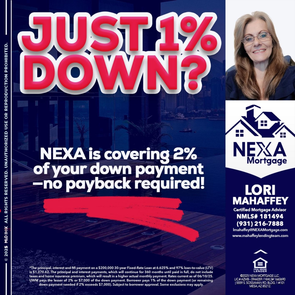 Hi, my name is Lori Mahaffey. I’m a Loan Officer with NEXA Mortgage LLC., offering personalized mortgage solutions, fast customized quotes, great rates and service with integrity.
