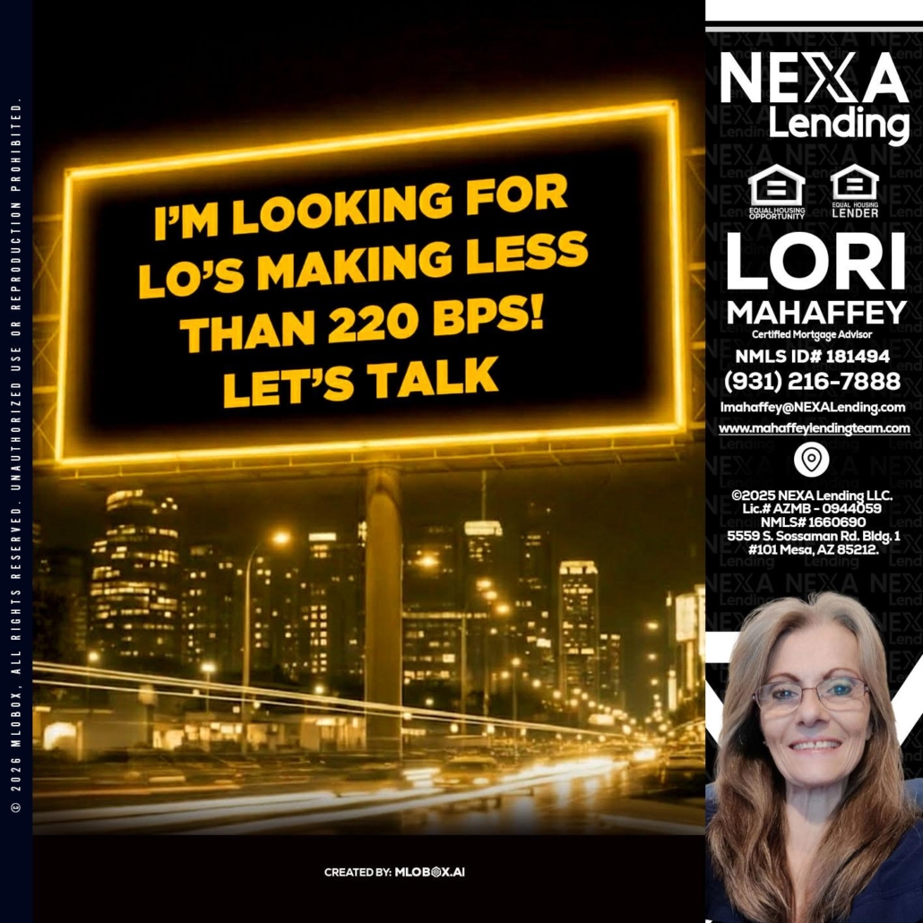 Hi, my name is Lori Mahaffey. I’m a Loan Officer with Lori Mahaffey LLC, offering personalized mortgage solutions, fast customized quotes, great rates and service with integrity.