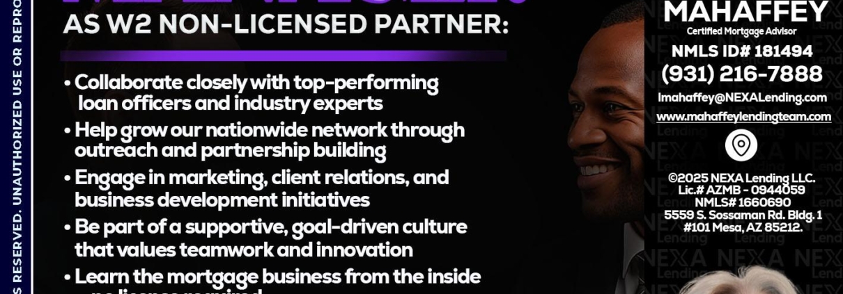 Hi, my name is Lori Mahaffey. I’m a Loan Officer with NEXA Mortgage LLC., offering personalized mortgage solutions, fast customized quotes, great rates and service with integrity.