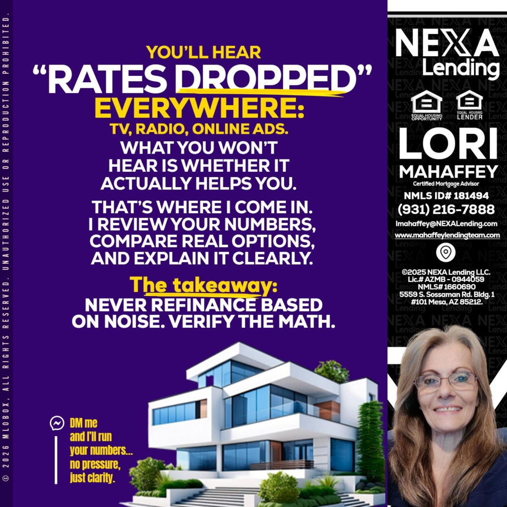 Hi, my name is Lori Mahaffey. I’m a Loan Officer with Lori Mahaffey LLC, offering personalized mortgage solutions, fast customized quotes, great rates and service with integrity.