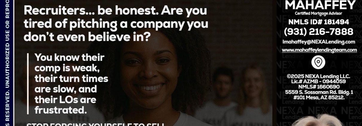 Hi, my name is Lori Mahaffey. I’m a Loan Officer with NEXA Mortgage LLC., offering personalized mortgage solutions, fast customized quotes, great rates and service with integrity.