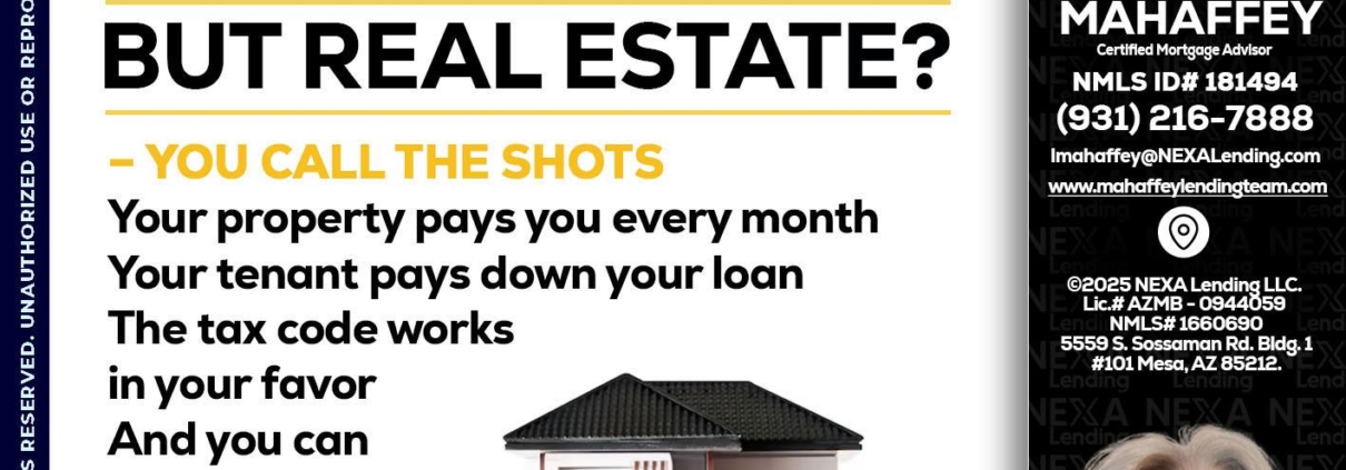 Hi, my name is Lori Mahaffey. I’m a Loan Officer with NEXA Mortgage LLC., offering personalized mortgage solutions, fast customized quotes, great rates and service with integrity.