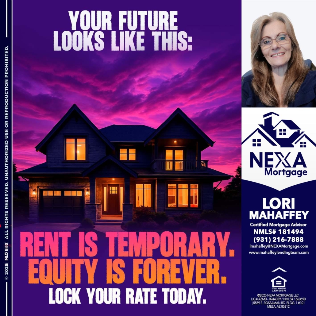 Hi, my name is Lori Mahaffey. I’m a Loan Officer with NEXA Mortgage LLC., offering personalized mortgage solutions, fast customized quotes, great rates and service with integrity.